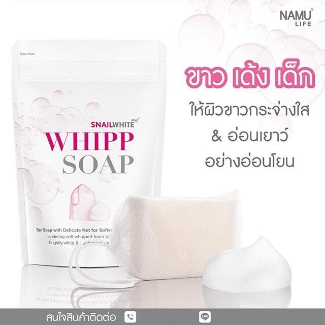 NAMU LIFE Snail White Whipped Soap Netting Whipped Foam Add water to the skin Make the face radiant, youthful, naturally healthy Bright white skin, smooth skin, soft, moisturized and helps reduce bacteria to clean the face. Along with rejuvenating for healthy skin, white, radiant, youthful, gentle