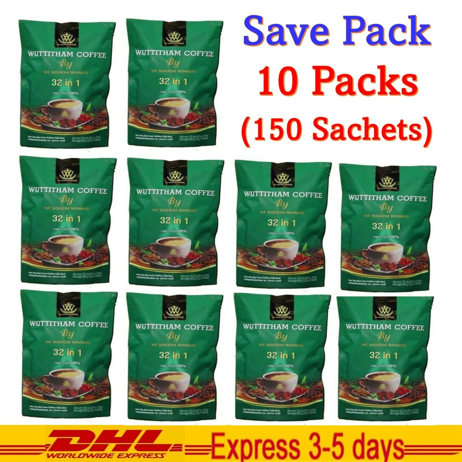 10x Wuttitham Coffee Herb Health Instant Coffee Mixed Weight Control Sugar Free Expedited shipping