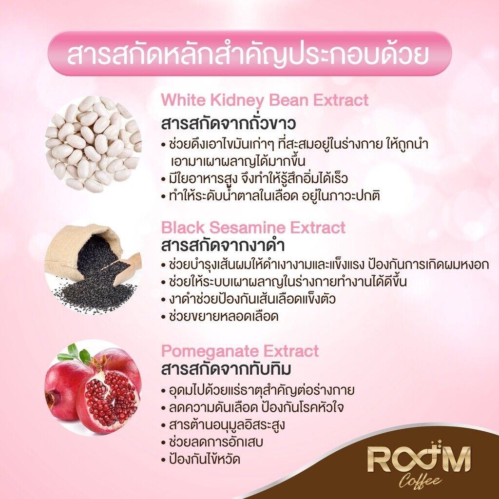 FDA registration no: 10-1-00152-1-0005 Product description: Room coffee mixed powder Antioxidants, collagen, vitamins, minerals and dietary fiber. 36 types of extracts that gives 5 benefits 1. Detox the intestines 2. Block flour, fat 3. Burn increases the metabolic rate. 4. Build muscle 5. Boost to have energy ? More than normal coffee. Drink and get healthy and have a good figure. ? The taste is fragrant, soft and smooth. ? Healthy skin, not shabby ? 0% trans fat ? 0% sugar ?0% cholesterol ? Calories only 40 Kcal!!! Vegetarian / vegetarian / Muslim can eat (collagen made from baby carrots) With FDA, GMP, HACCP, 100% safe. How to take: