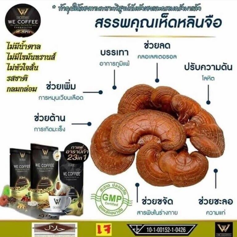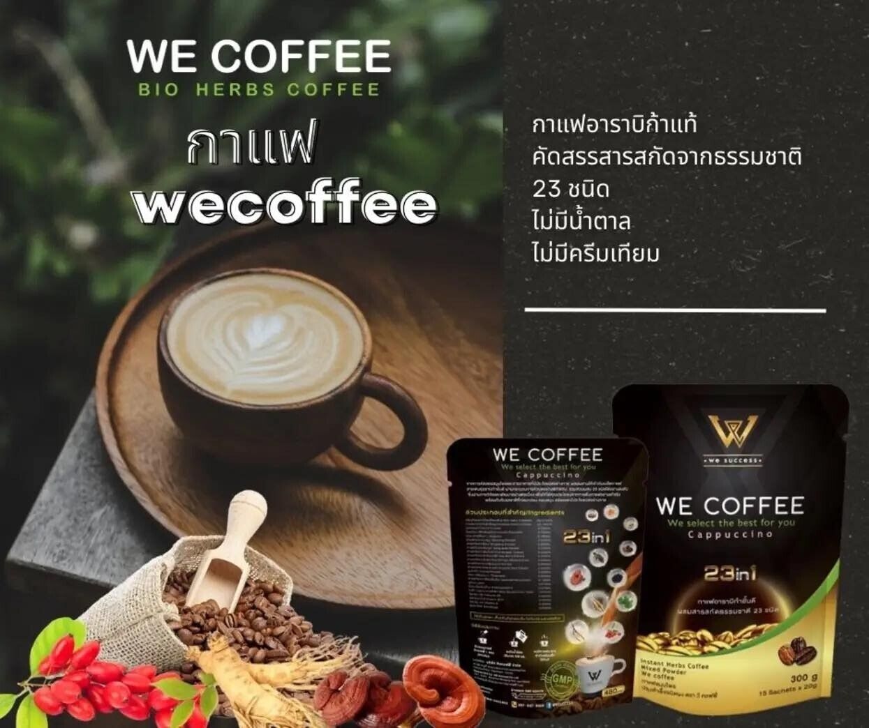 We coffee Herbal coffee, Ginseng, Ganoderma lucidum, Goji berry, Tangkui, Moringa, Krachai black, Baqui leaves and other herbs, total 23 species, suitable for those who want to take care of their health,.