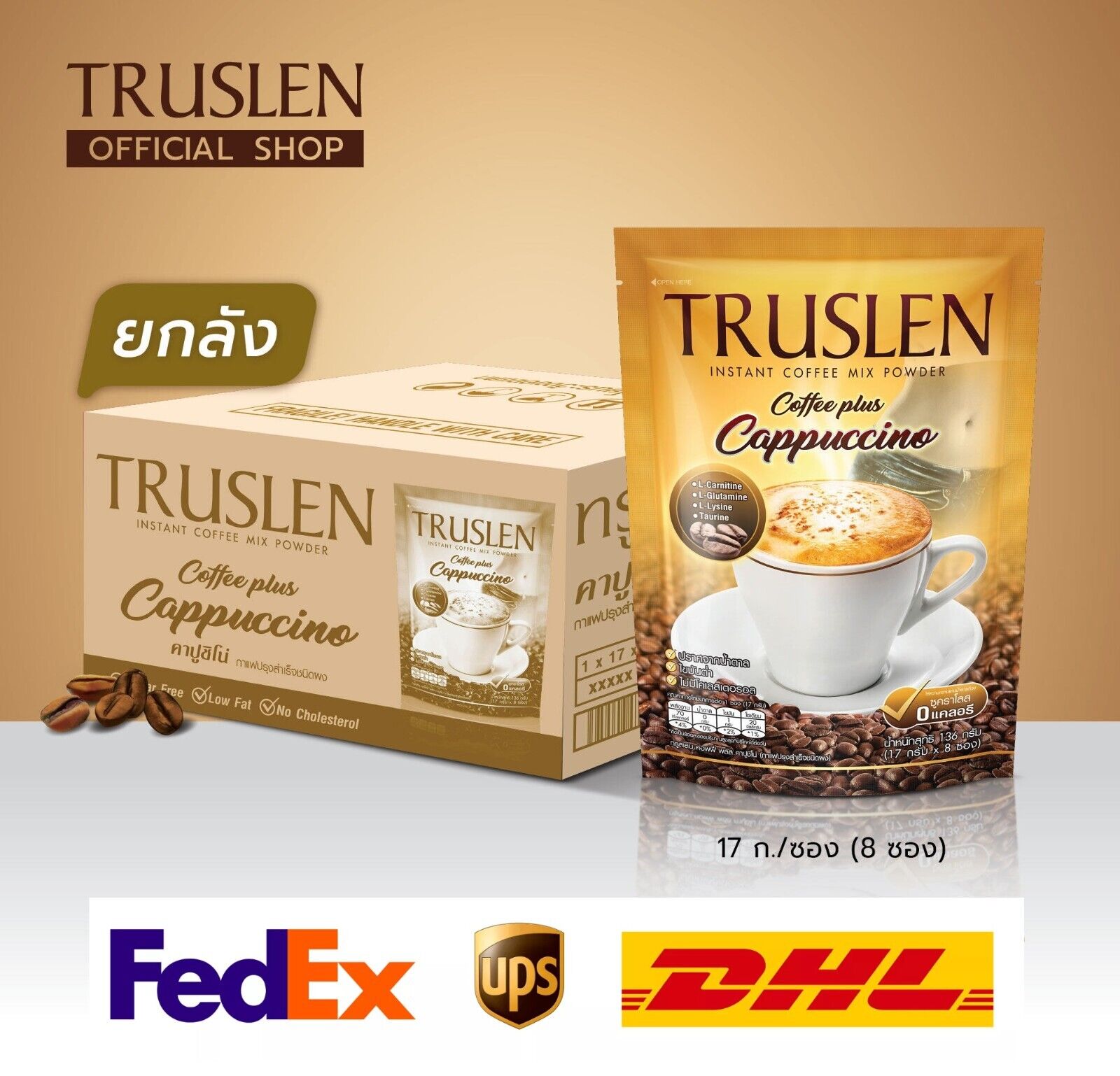 Truslen Coffee Plus Cappuccino. Just brew with hot water, it guarantees the aroma and mellowness from good coffee beans that have been in the hearts of coffee lovers for a long time.