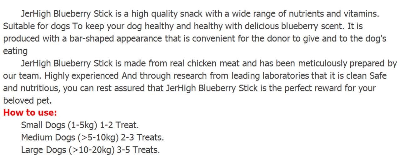 10pcs 70g JerHigh Blueberry Stick Dog Food Chew Treats Beauty Hair Chicken Meat |