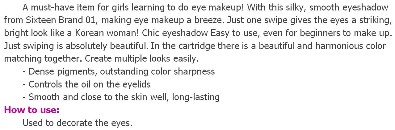 16BRAND Sixteen Eye Magazine Eye Shadow #01 Everyday Made in Korea |