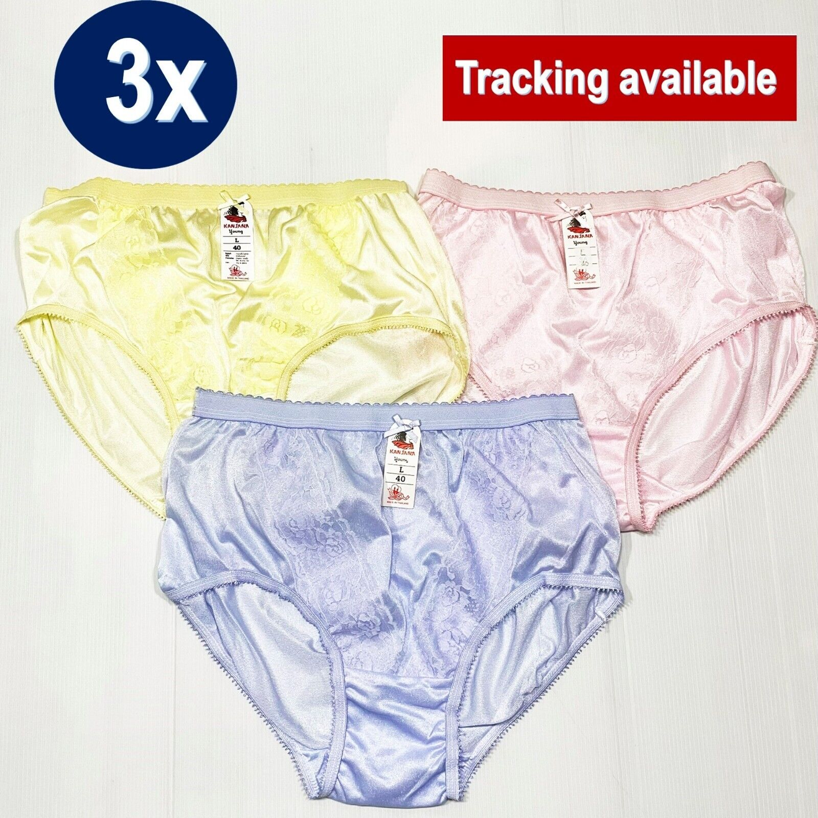 x3 Vintage Pink Panties Nylon Silky Bikini Hi Briefs Sissy Knickers Underwear L