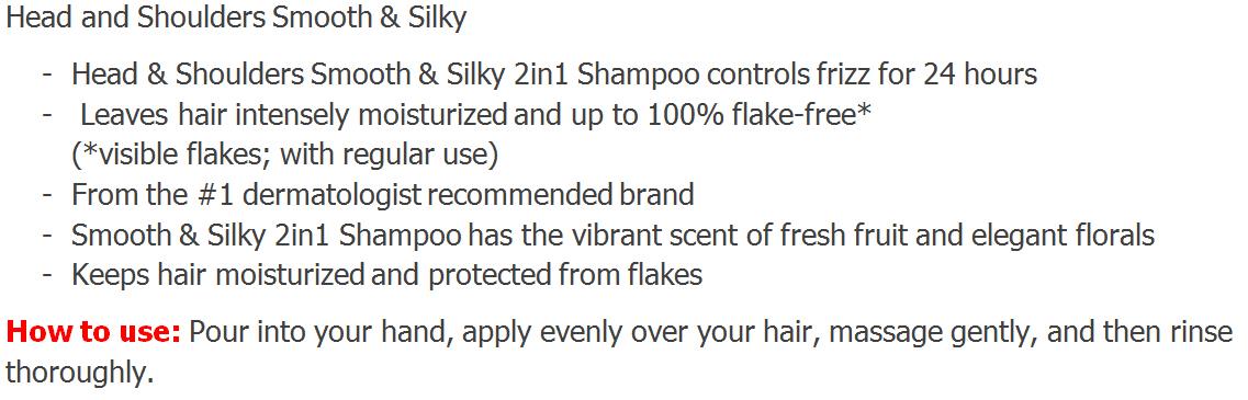 150ml Head and Shoulders Anti-Dandruff Shampoo Smooth From Root To Tips |