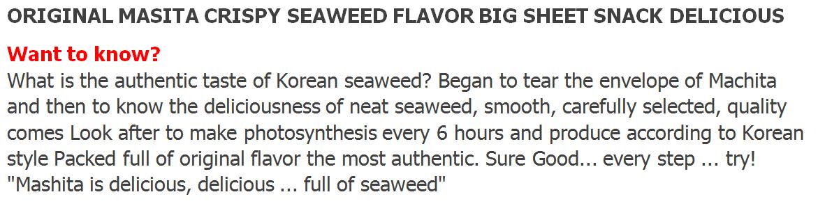12x3.6g Masita Thai Seaweed Dried ORIGINAL flavor no MSG added |