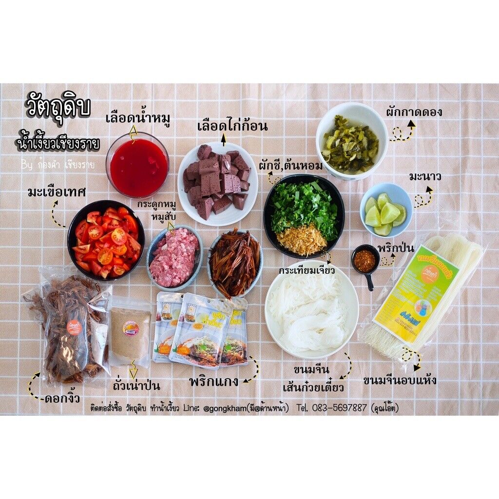 1. Fry 300 g minced meat with a packet of nam ngeaw chili paste then add 200 g of tomatos , then fry until well cooked. Add a small amount of water.