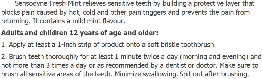 100g Sensodyne Fresh Mint Fluoride Toothpaste blocks the Hot Cold sensitivity |
