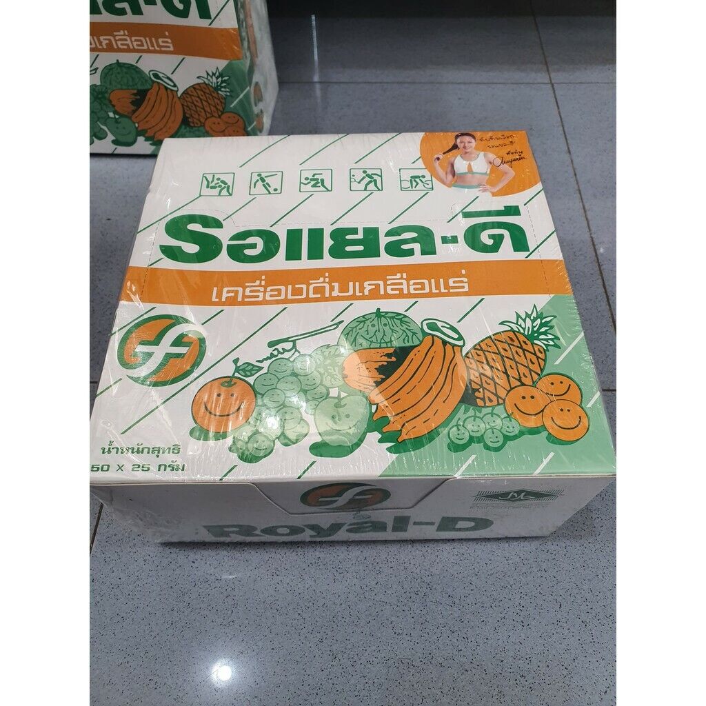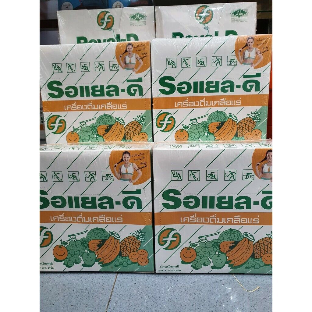 x50 sachets Electrolyte Health Sports Supplement Royal - D Powder Drink 25 g FAST Shipping via DHL express with tracking number ! Product Details: Condition: New with box, Never open Brand: Royal-D Type: Electrolyte beverage Dosage form: Powder Weight: 25 g / sachet Quantity: 1 box (total 50 sachets) Ingredients: Glucose 4.7 g Sodium 3.14 mEq Citrate 1.15 mEq Potassium 0.27 mEq Properties: - For those who sweat a lot, such as athletes, people who work hard and those who exercise - Glucose is digested and converted into energy quickly. - Potassium helps to strengthen nervous system and muscles heart rate control - Sodium maintains the water balance in the body. How to use: 1 sachet dissolved in a glass of drinking water 250 - 350 cc, stir before drinking. Precaution: Only those who sweat from exercise only. Should not eat more than 4 sachets per day.