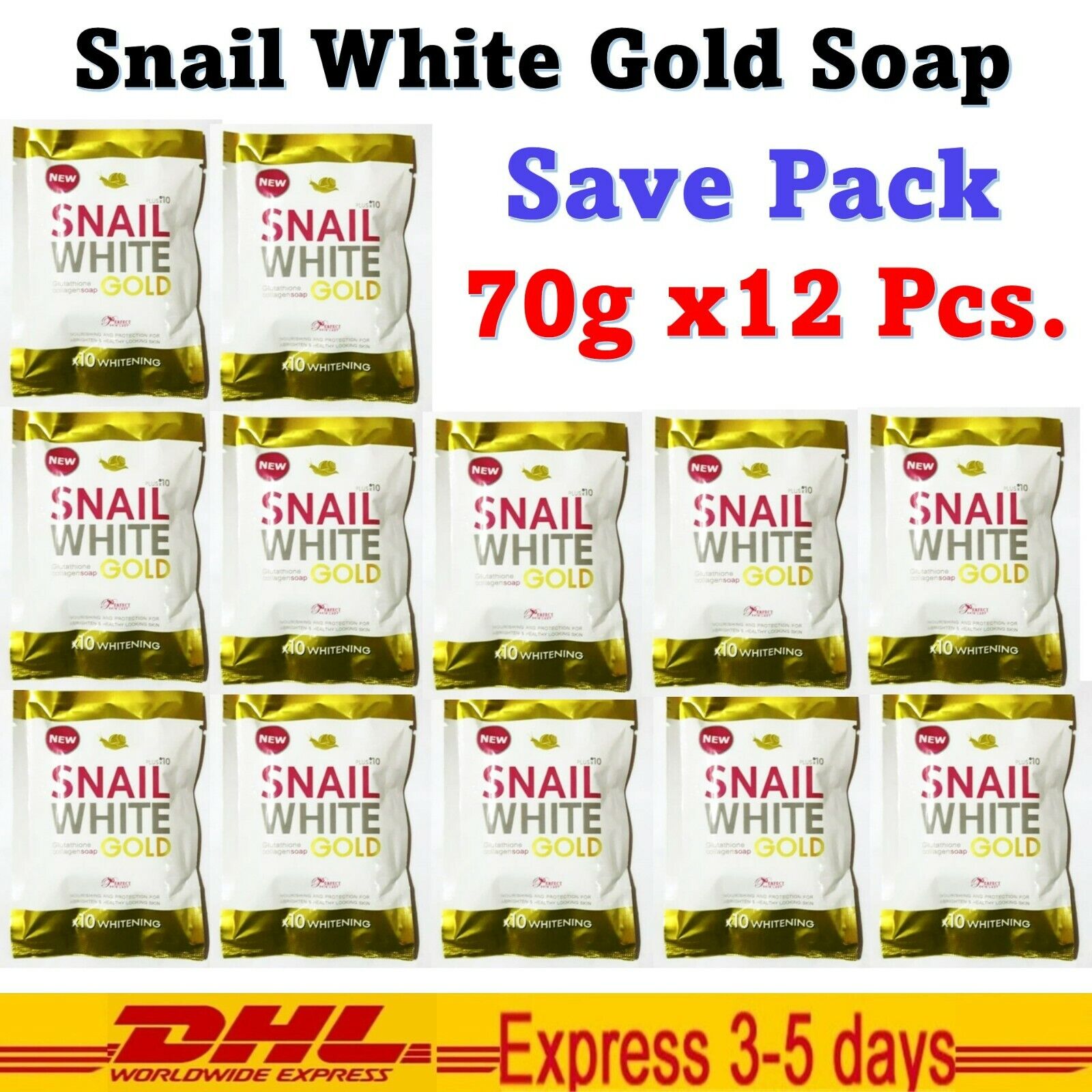 12x Snail White Gold Soap x10 vitamins C, E Reduce Freckles Acne Beauty Skin